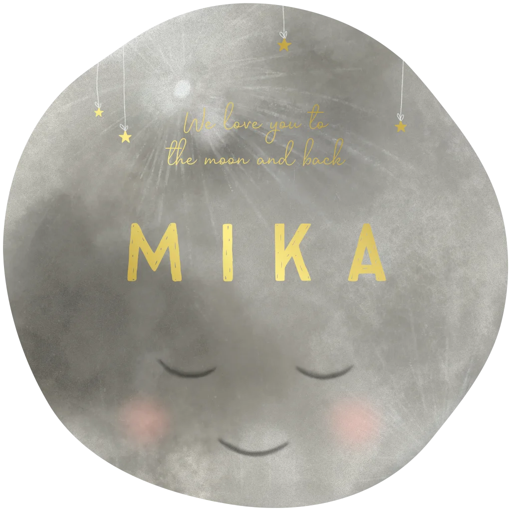 Organisch rond geboortekaartje van een maan en sterretjes in goudfolie