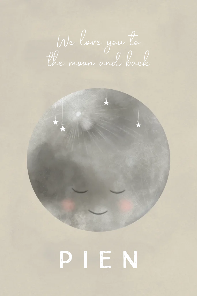 Een schattig, beige geboortekaartje met een prachtige maan en fonkelende sterretjes. Het goudfolie maakt het babykaartje voor jullie dochter helemaal af.