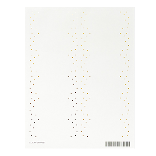Een vel met 12 adresstickers op glanzend wit papier. Elke sticker is mooi versierd met goudfolie stippen. Op de adressticker kun je zelf het adres schrijven of printen. Formaat: sticker: 43mm hoog x 109mm breed Vel: 225mm breed x 303mm hoog