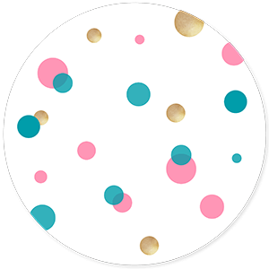 Feestelijke sluitzegel met petrol, roze en goudkleurige confetti. Door de witte achtergrond spatten de kleuren van het papier af.