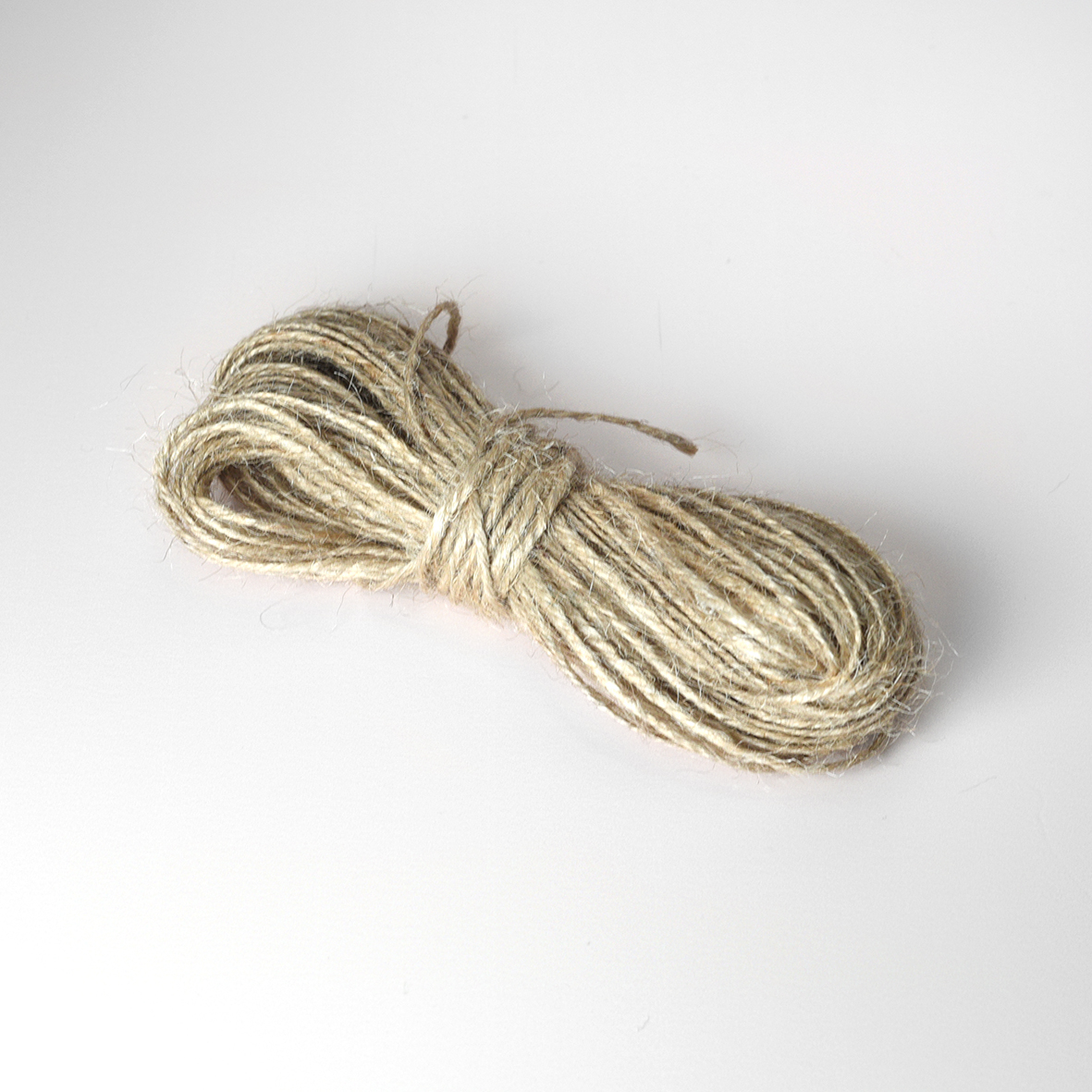 Dun jute touw (20 meter). Geschikt om ca. 25 kaarten mee te versieren.