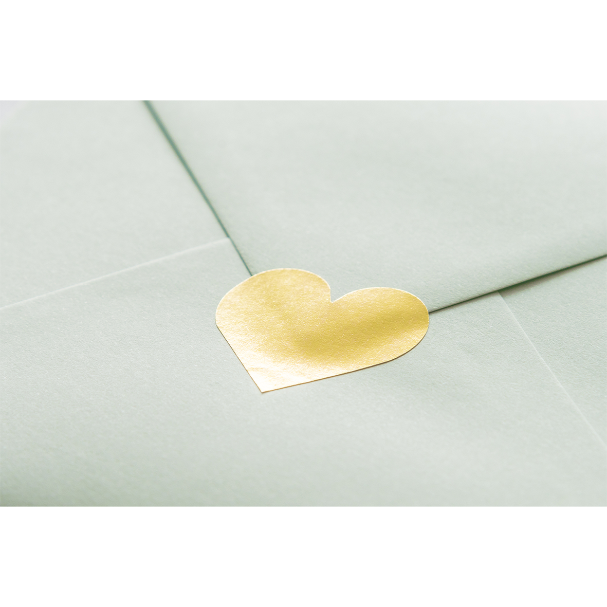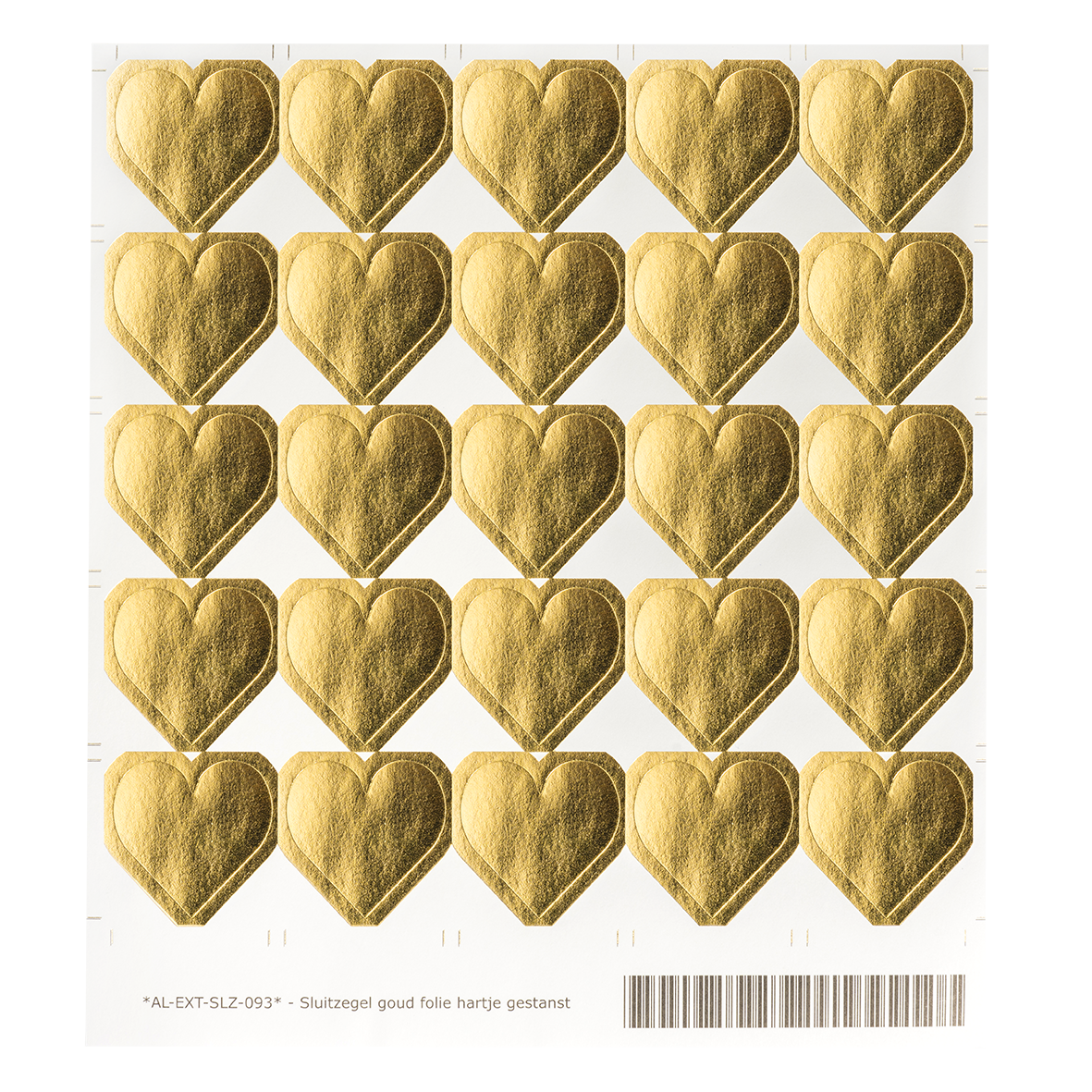 Sluitsticker in de vorm van een gouden hartje, geleverd per velletje met daarop 25 stickers.