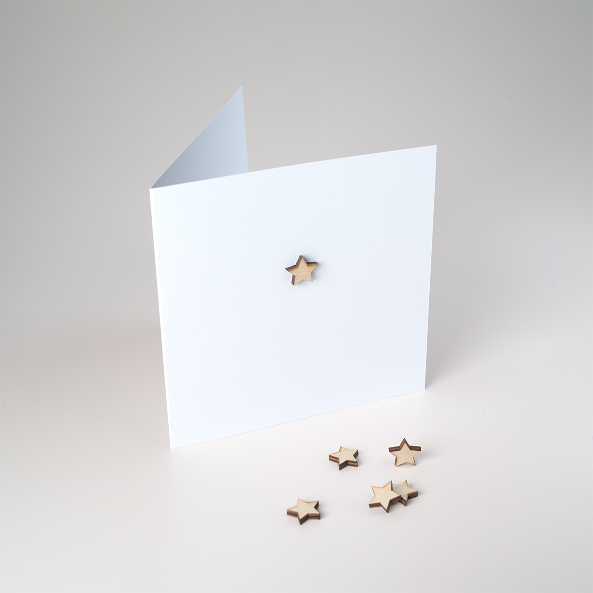 Mooie houten sterretjes met gemakkelijk plakstripje voor op je kaartje. In elk zakje zitten 25 sterretjes.