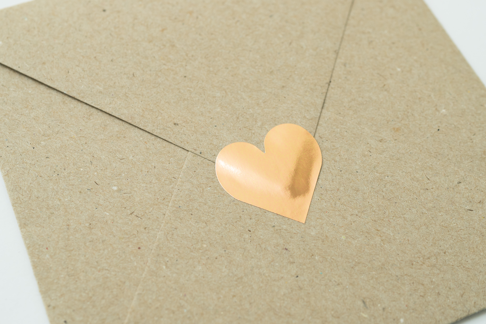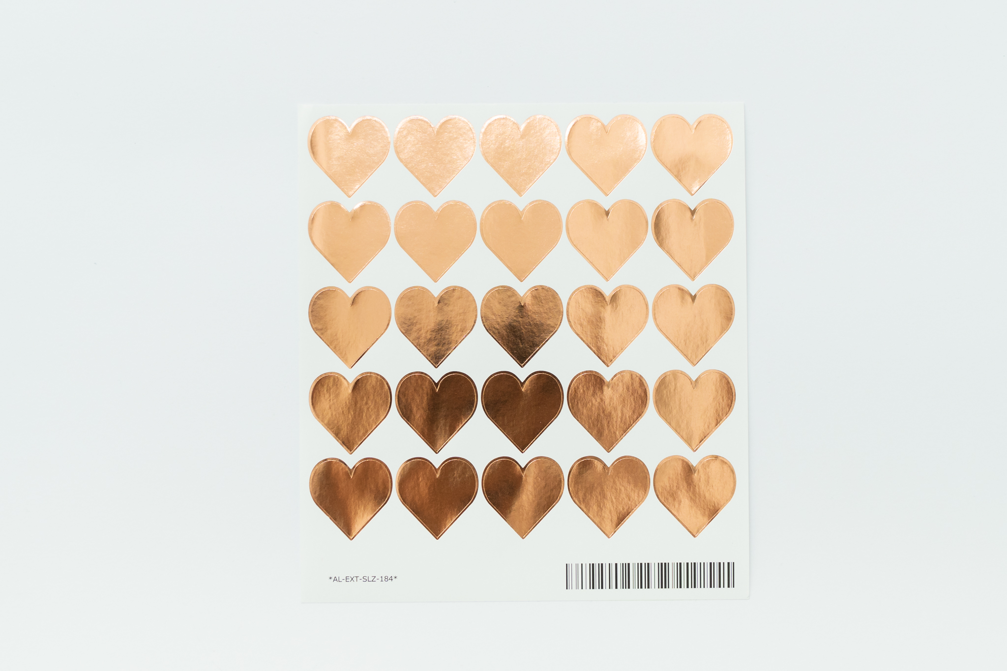 Sluitzegel roséfolie hartje, geleverd per velletje met daarop 25 stickers.
